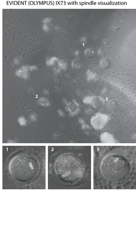 Synga PolarScope and Olympus Evident comparison of observation of mice oocytes MII stage shows the good visibility of the spindle and proves the PolarScope functionality.